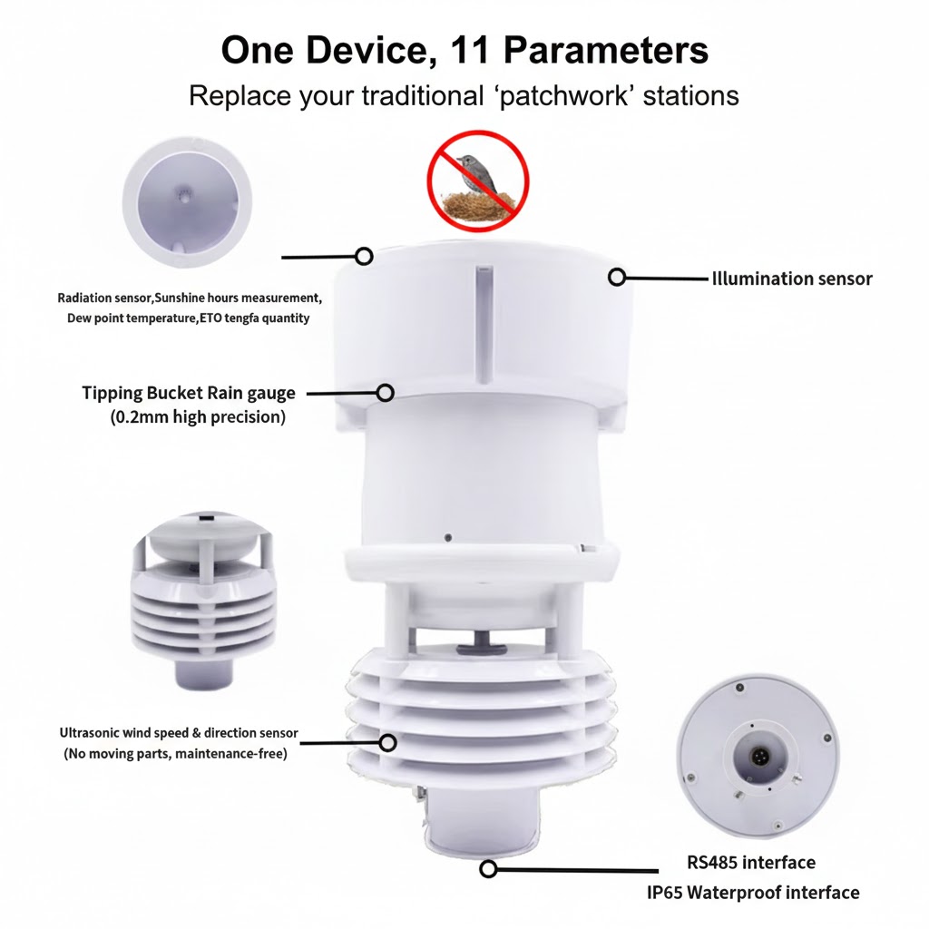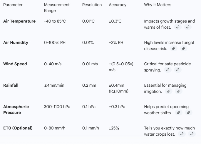 Jak mohou moderní pěstitelé optimalizovat zavlažování a hubení škůdců pomocí jediného zařízení? Vysoce kvalitníintegrovaná zemědělská meteorologická staniceje datově orientovanou odpovědí na tyto výzvy. Monitorováním až 11 kritických parametrů – od teploty a vlhkosti vzduchu až po referenční evapotranspiraci (ET0) – tento profesionální nástroj transformuje odhady z terénu na praktické informace pro chytřejší zemědělství.